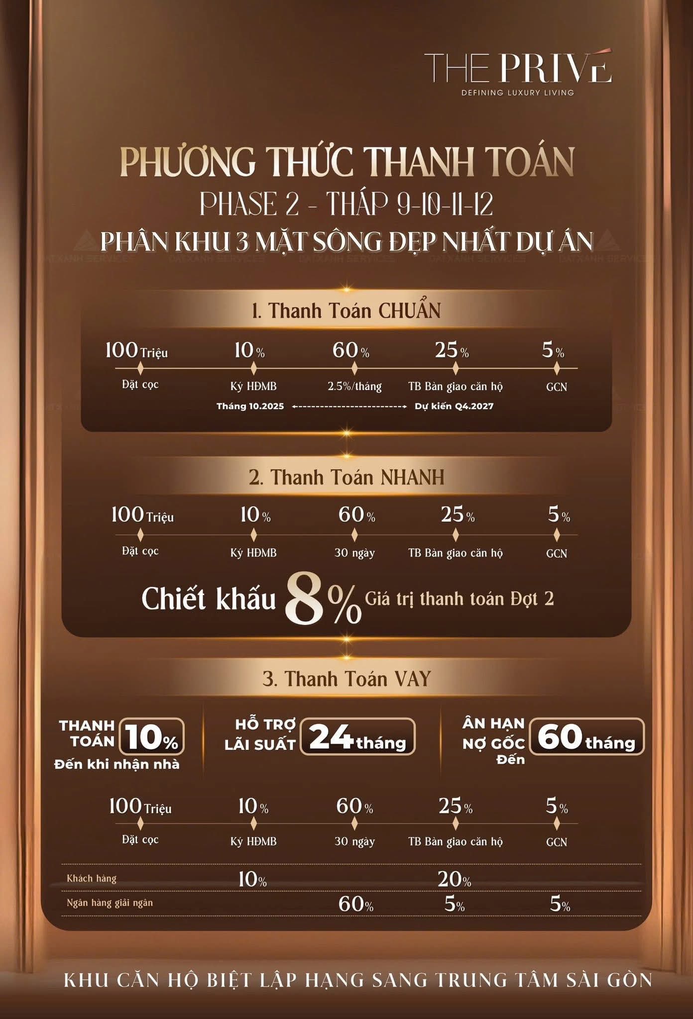 The Privé đưa ra 3 lộ trình thanh toán riêng biệt, phục vụ các chiến lược tài chính khác nhau: