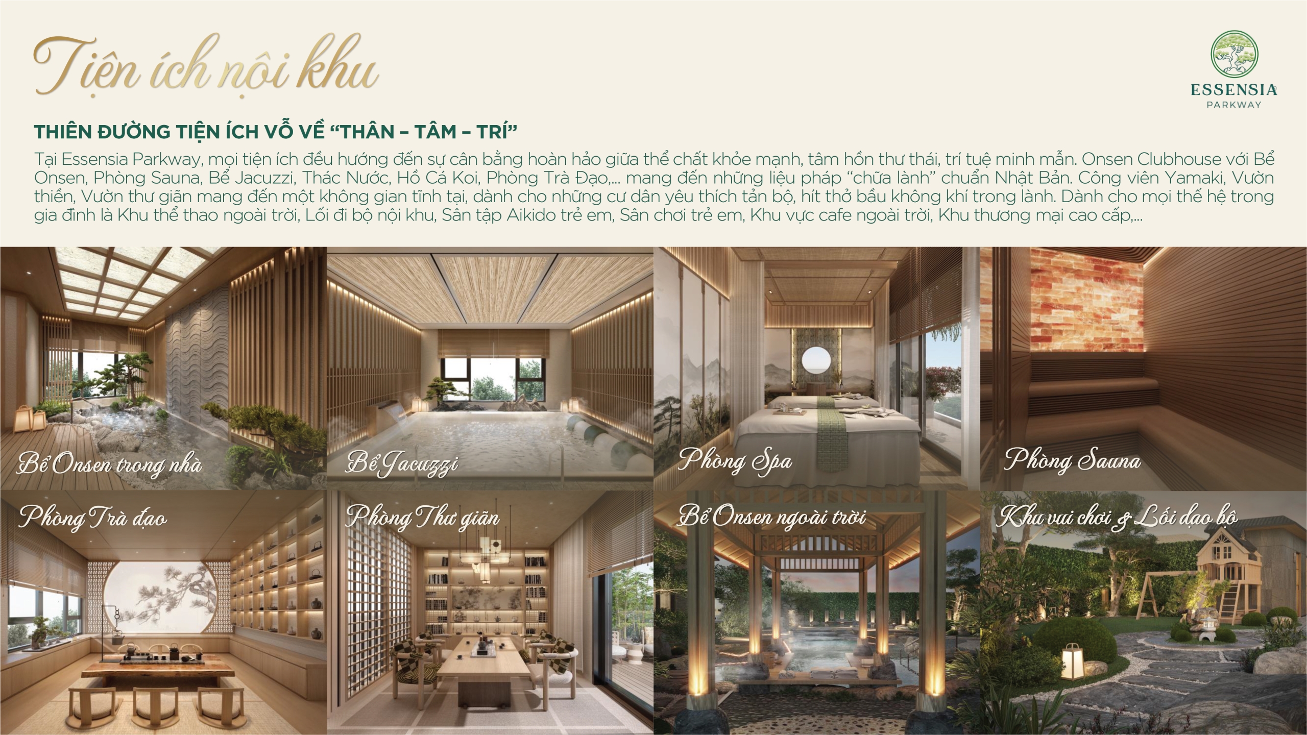 Chạm ngay ngưỡng cửa Essensia Parkway là những tiện ích đa tầng, chăm sóc toàn diện cuộc sống từ sức khỏe – tinh thần, cho tới những giá trị gia đình và tương lai của con trẻ.