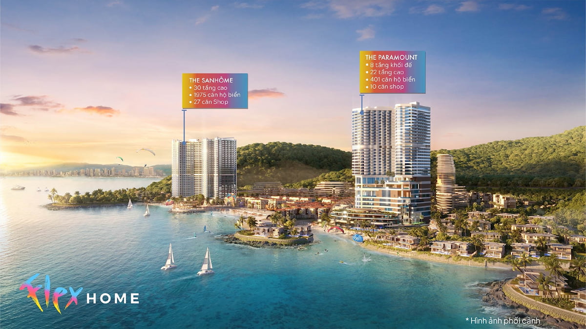 - Loại hình sản phẩm: 98 căn biệt thự Gran Melia Nha Trang, 168 căn shophouse, 2413 căn hộ biển Flex Home