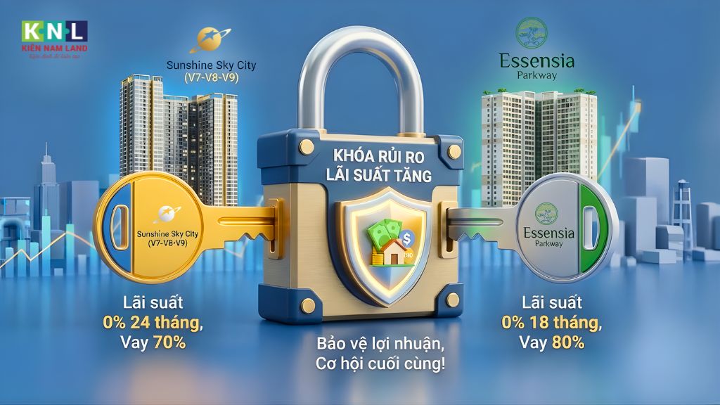 Đừng để chi phí vốn tăng bào mòn lợi nhuận. Hãy liên hệ ngay Kiên Nam Land để “khóa” mức lãi suất 0% cho Essensia Parkway và Sunshine Sky City trước khi hết hạn!