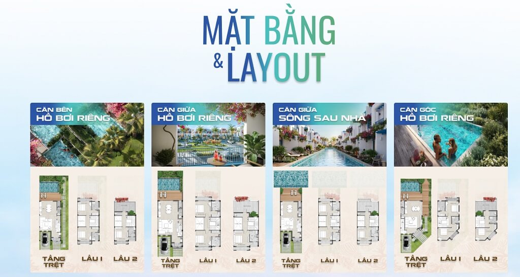 Căn giữa (Sông sau nhà) Giữa dãy Tầng trệt mở ra sông cảnh quan phía sau, kết hợp hồ bơi riêng trên tầng thượng. 3
